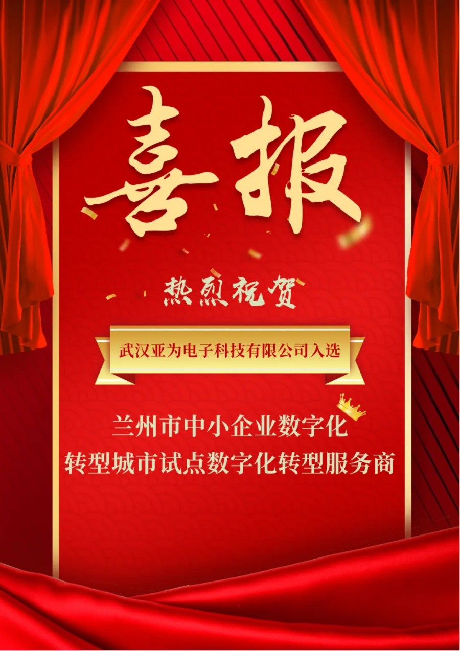 近日,兰州市工业和信息化局发布《关于兰州市中小企业数字化转型城市试点数字化转型服务商(第二批)遴选结果的公示 》,遴选确定了6户全行业服务商,20户细分行业服务商。武汉亚为电子科技有限公司(以下简称“亚为”)成功入选"兰州市中小企业数字化转型城市试点数字化转型服务商"(通用零部件制造),助力兰州市中小企业数字化转型升级。