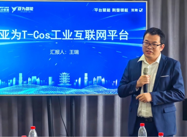 会上,亚为董事长王瑞分享了平台建设及运营经验,他介绍,平台通过跨平台的技术能力和服务能力,研发了数百款硬件终端,近千款软件,以及数千个工业模型,结合人工智能、标识解析等技术进行深度挖掘和预测,为企业提供精准的决策支持。形成了集国产化信号高精准采集、边缘高效能信号汇聚、UMS通用链接、PMS流程化管理、T-Cos平台化服务的跨行业跨领域能力。