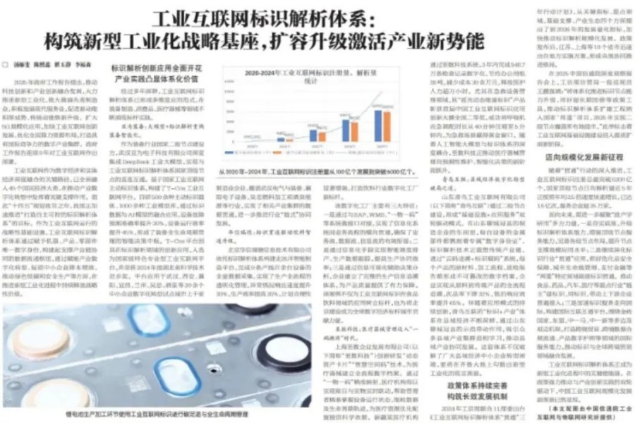 工业互联网作为数字经济和实体经济深度融合的关键路径,已全面融入45个国民经济大类,在推动产业数字化转型中发挥着关键支撑作用。值此“十四五”规划收官之年,我国正加速推进“打造自主可控的标识解析体系”目标。作为工业互联网运行的战略性基础设施,工业互联网标识解析体系通过赋予机器、产品、零部件唯一数字身份,构建起支撑产业链协同的数据流通枢纽,通过赋能产业数字化转型、促进中小企业降本增效、推动绿色低碳和安全生产等方面,在推进新型工业化进程中持续释放战略性价值。