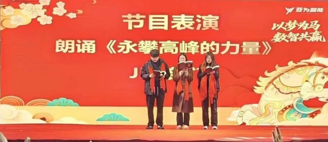 晚宴启幕,暖意渐浓。美味佳肴相伴,精彩节目纷呈,一场兼具视觉与听觉的盛宴在欢声笑语中上演。员工们各显身手,歌曲深情婉转、诗朗诵饱含深情,字字句句诉说着对亚为的热爱与期许。